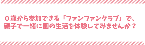 | 開催日 | 毎週水曜日(園の行事により変更もございます) (日程は、ファンファンクラブだよりにて掲載しています) |